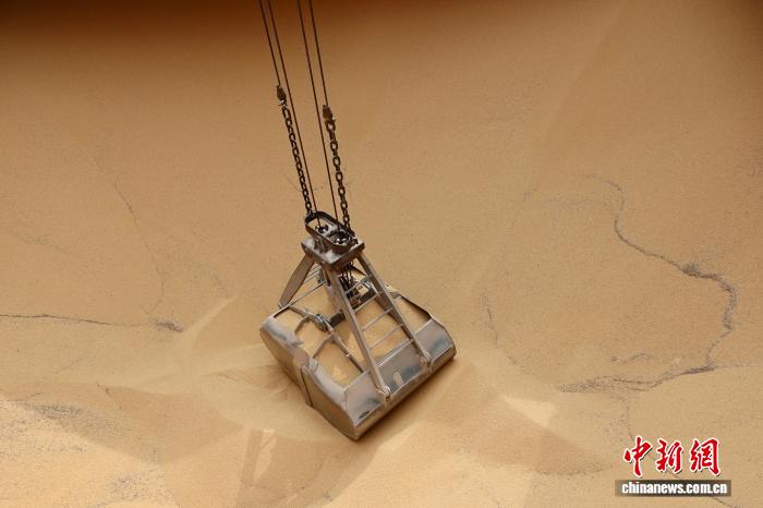 4月9日,抓斗抓与货舟里的年夜豆。中新社记者 刘子琳 摄